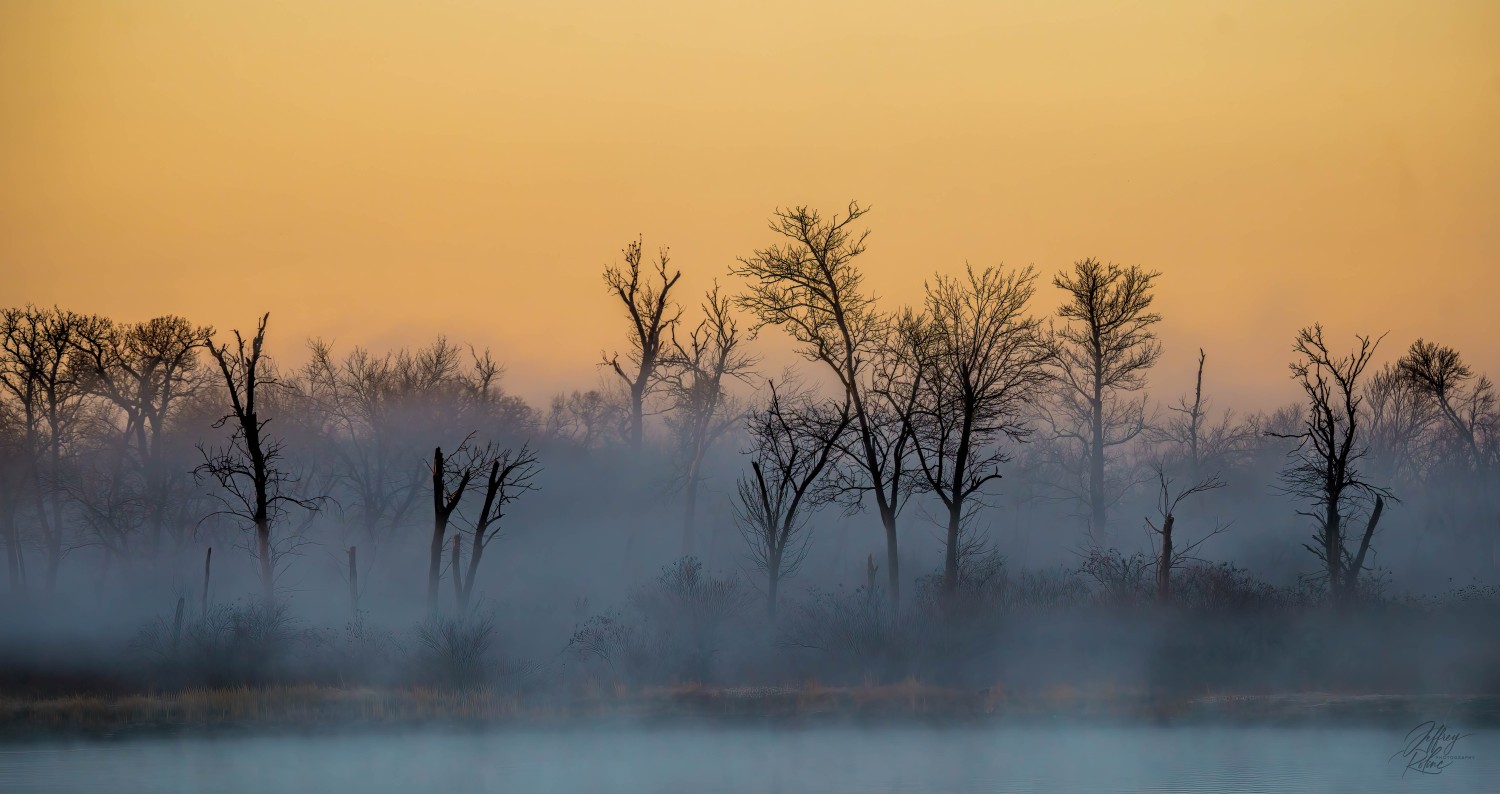 Caddo Lake River Scene Pastel Colors on a Foggy Morning Great White Egret Contortionist The Look